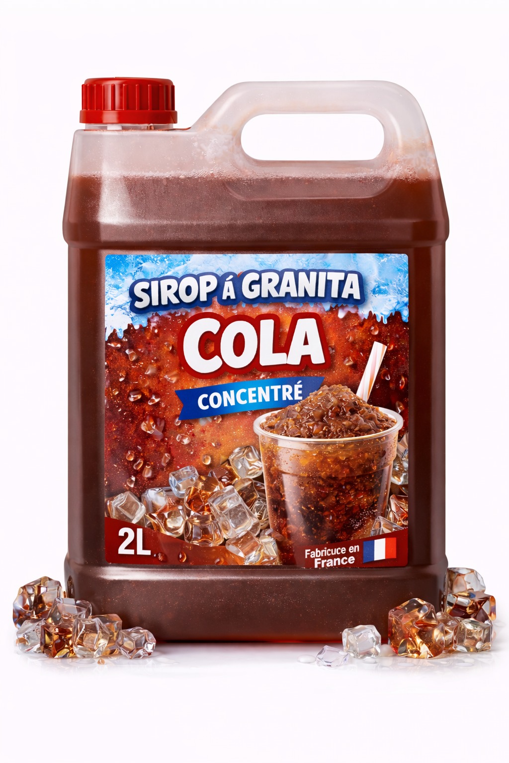 Découvrez notre sirop à granita concentré Cola en bidon de 2L, la solution idéale pour préparer de grandes quantités de préparation granita tout en réduisant vos coûts.