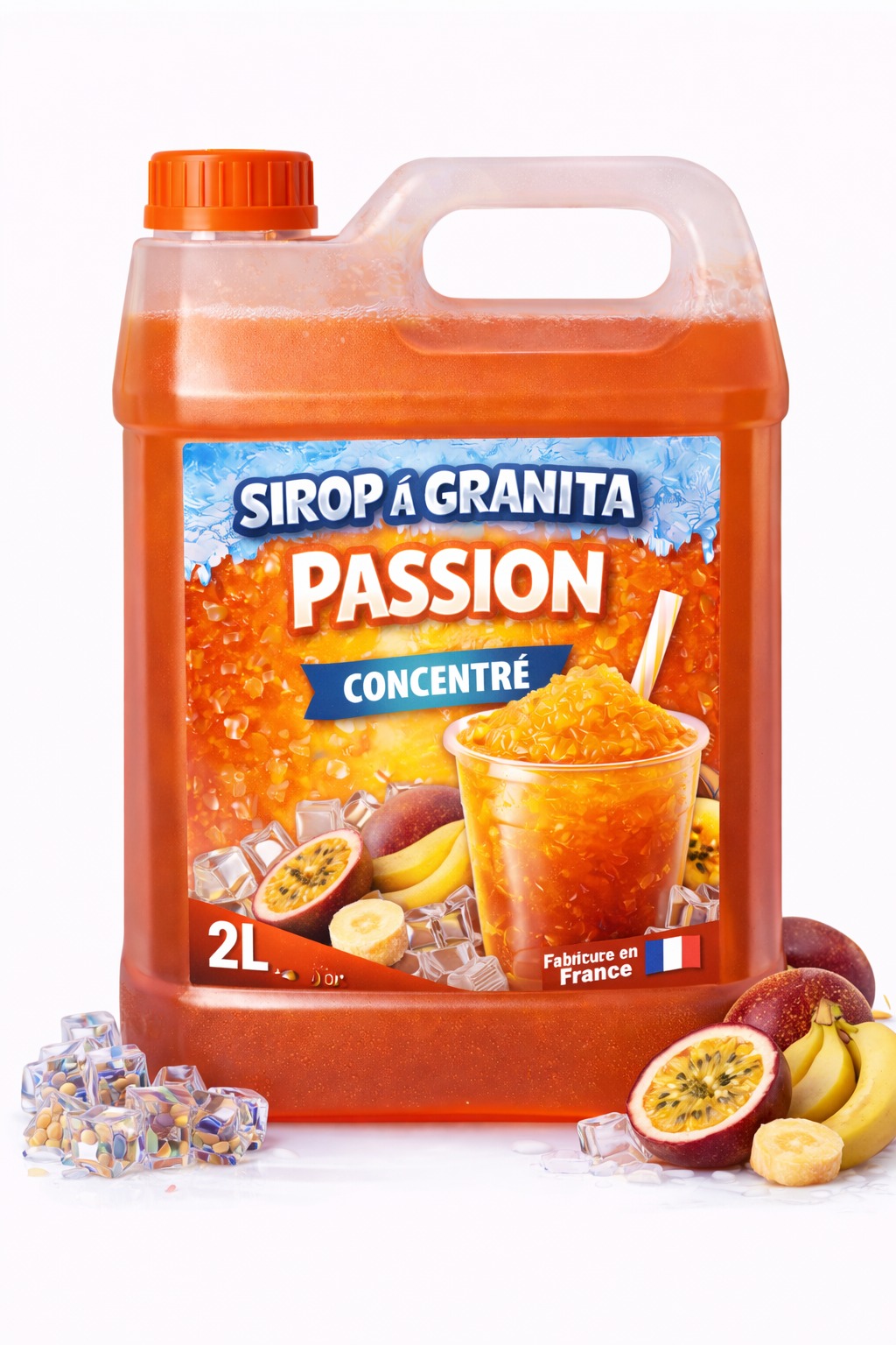 Découvrez notre sirop à granita concentré Passion en bidon de 2L, la solution idéale pour préparer de grandes quantités de préparation granita tout en réduisant vos coûts.