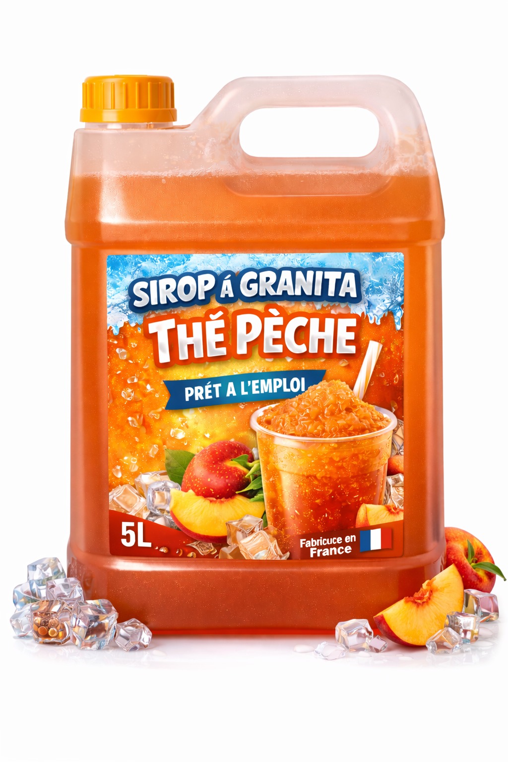 Sirop à Granita pret a l'emploi thé pêche 5L – Jusqu’à 40L de préparation !